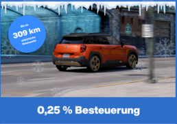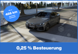 0,25% Besteuerung für vollelektrische BEV-Modelle bis zu einem Brutto-Listenpreis von 100.000 €.