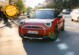 MINI Aceman SE: Energieverbrauch (in kWh/100 km) kombiniert: 14,6 (WLTP) CO₂-Emission (in g/km) kombiniert: 0,00 (WLTP) Effizienzklasse: A